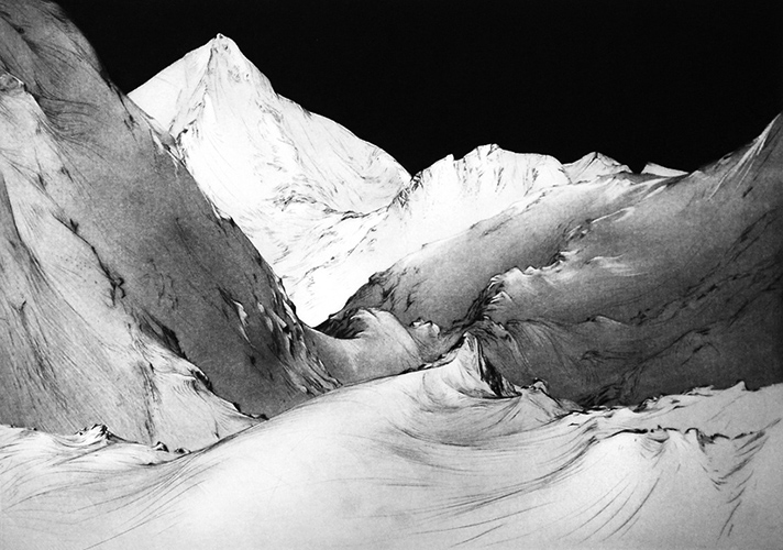 Durrakarlen, 55 x 80 cm, 2012, Kaltnadel/Aquatinta/Schab-Aquatinta