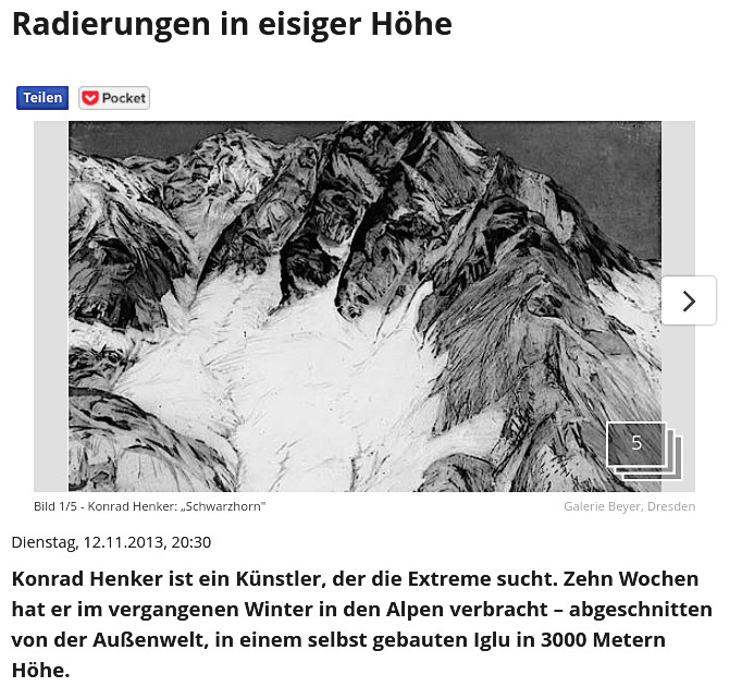 Schneider, Jörg: Dresdner Grafiker auf Motivsuche in eisiger Höhe. In: Morgenpost am Sonntag, 19. August 2007 |