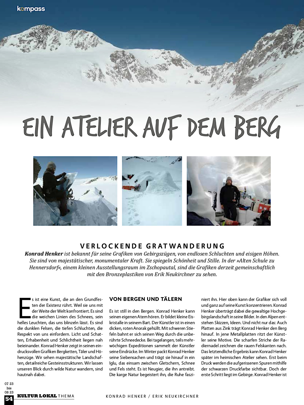 List, Dorothea: Ein Atelier auf dem Berg In: KOMPASS Stadtmagazin, Juli-Aug. 2023 |